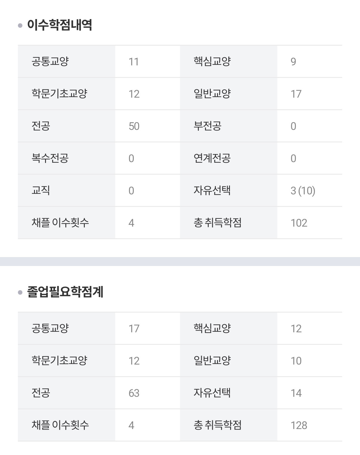 이수학점 관련해서는 단과대교학팀(02-300-0530)에 문의해주시기 바랍니다.